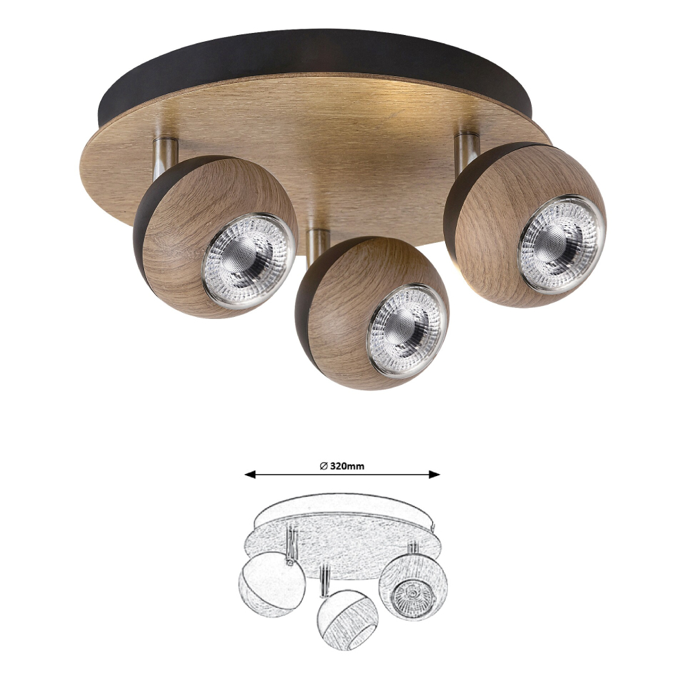 ARTHUR spot 3×GU10 35W tölgy/fekete D:320