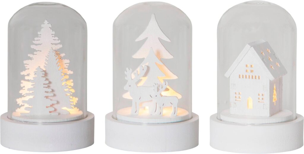 Asztali dekor üveg bura fehér különböző minta 3db LED inc.3e@
