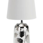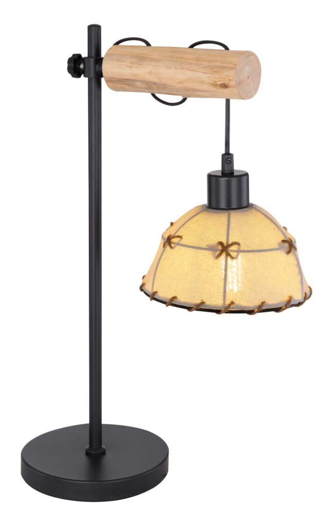 Asztali lámpa fekete fém mennyezetrózsával, textil kábellel, textil búrával