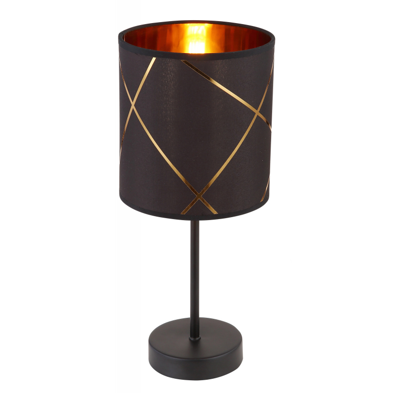 asztali lámpa fém fekete alaplap fekete-arany szövet búra bemetszések