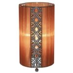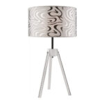 Asztali lámpa fém fekete fém fa kinézetű sötét textil fekete kábel