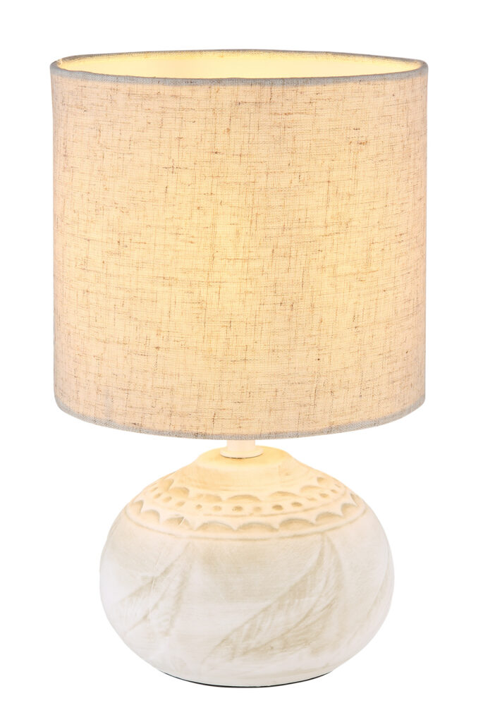 asztali lámpa kerámia fehér antik műanyag fehér vászonbézs kábel
