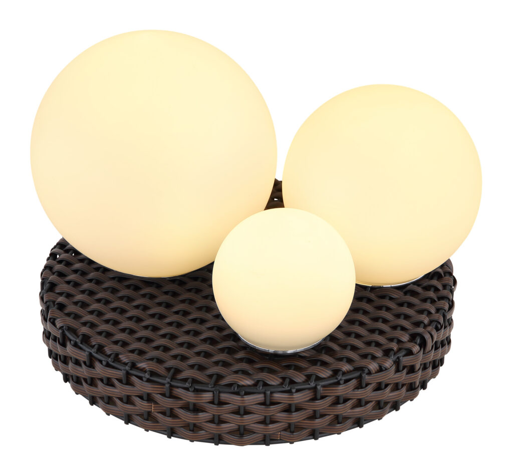 Asztali lámpa világosszürke rattan talp, fehér akril gömb búrákkal. dm