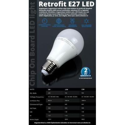 E27 LED lámpa (9W/200°) körte A60 természetes fény