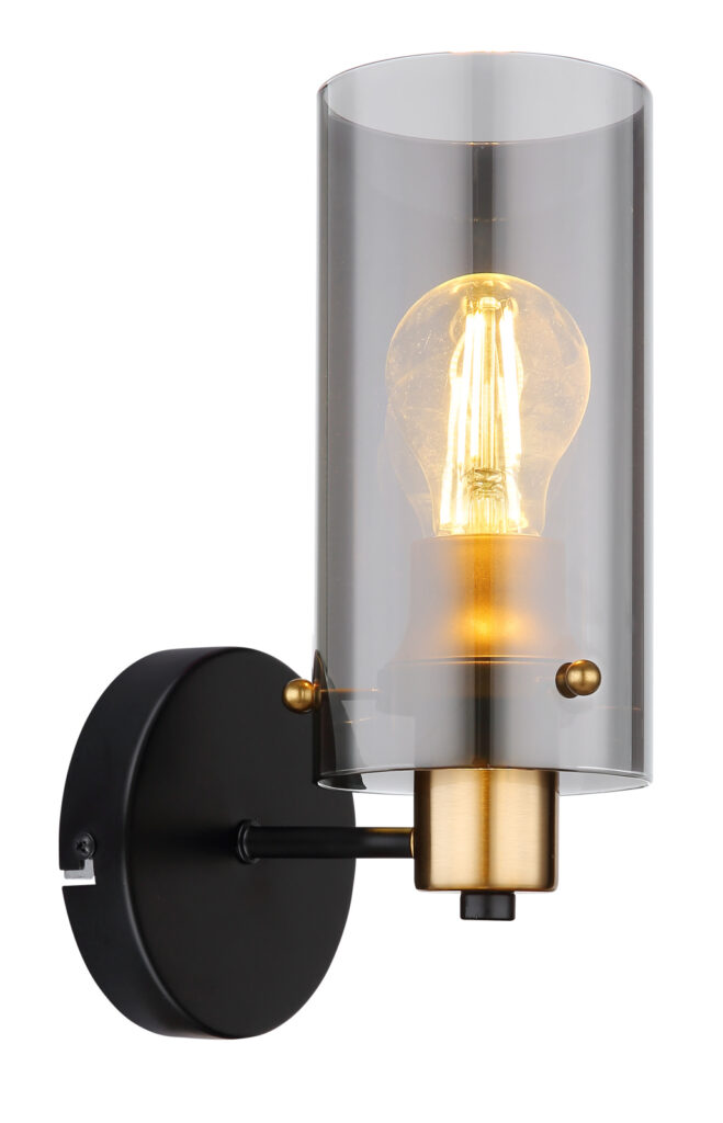 Fali lámpa fém matt fekete fém matt sárgaréz füstszínű üveg