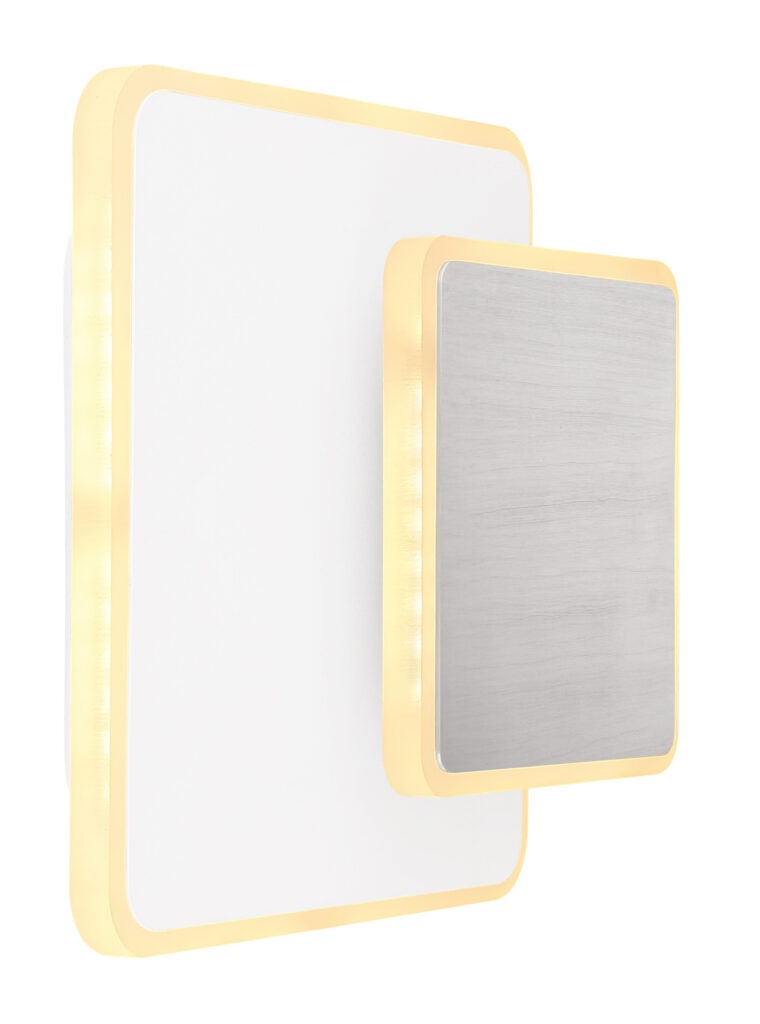Falikar fém fehér szín, akril opál búrával. a kis négyzet forgatható