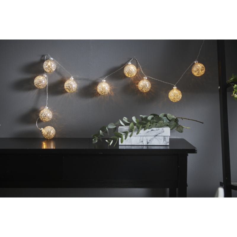 Fényfüzér 2 elem 10 LED ezüst gömb 1,3m glit@