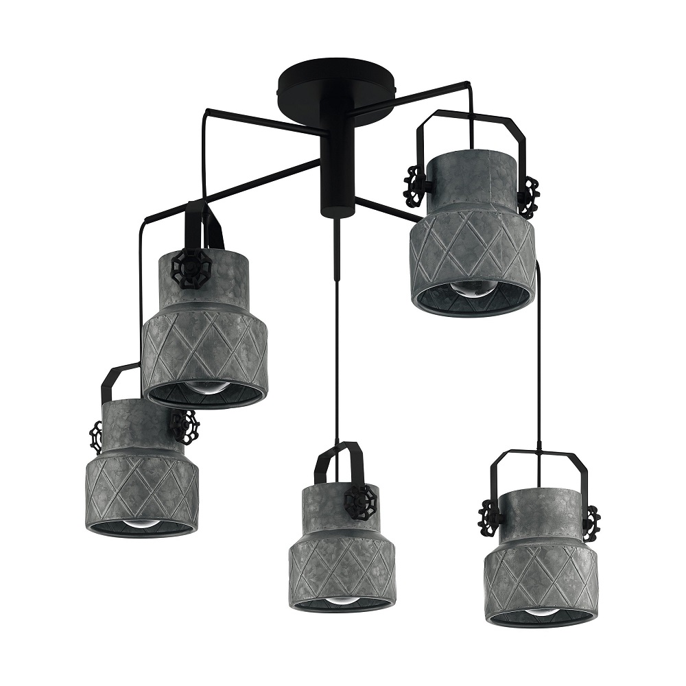 Függ E27 5x40W fekete/horganyzott hilc