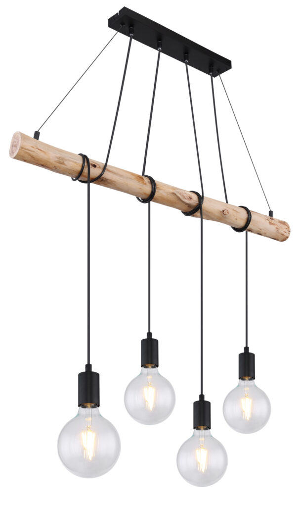 Fuggesztekek › Függeszték fekete fém alaplap, natúr fa betéttel, kenderkötél vezetékkel