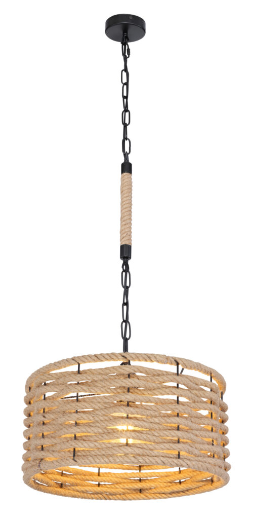 Fuggesztekek › Függeszték fekete fém mennyezetrózsa, barna kenderkötél búrával. O:400