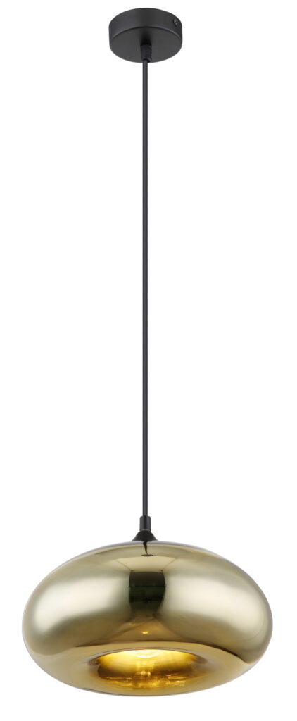 Függeszték fekete fém mennyezetrózsa, üveg búra arany színben. O:280,