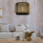 Függeszték fekete fém váz füstszínű 4 különböző méretű és formájú üveg