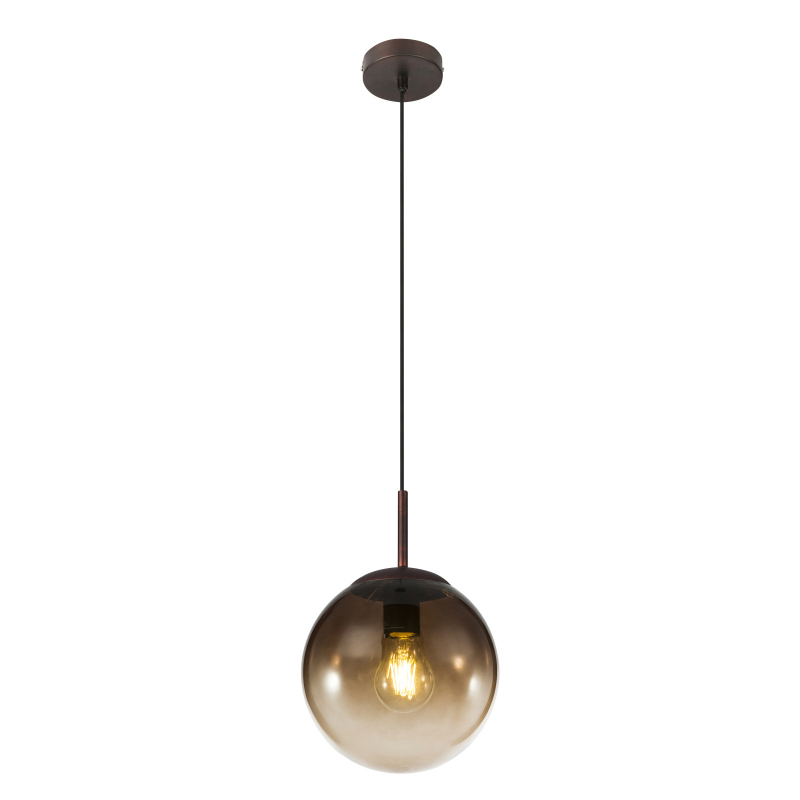 Fuggesztekek › Függeszték fém barna mennyezetrózsa borostyán színű üveg búrával szerelve