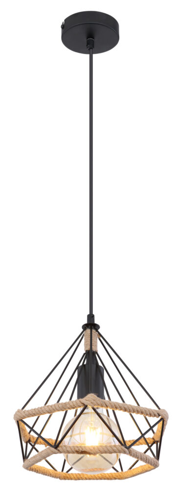 FÜGGESZTÉK FÉM FEKETE ALAP, BARNA K ENDERKÖTÉLLEL KOMBINÁLVA. O:250, H: