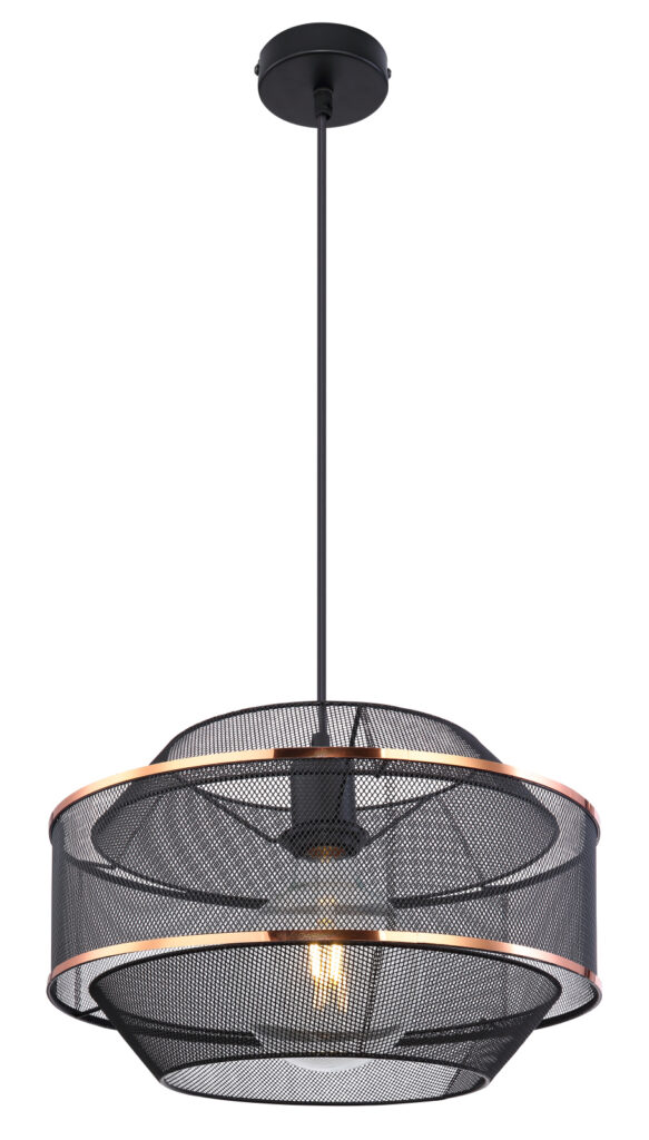 Fuggesztekek › Függeszték fém fekete-arany színben ,fém drót búrával. o 350, h: 1500,