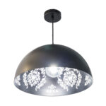 Függeszték fém fekete váz, fa gerenda, fekete fém drót búrák, barna keret