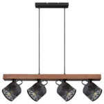 Fuggesztekek › Függeszték fém fekete váz, fa gerenda, fekete fém drót búrák, barna keret