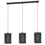 Függeszték fém fekete váz üveg búra réz dekor gyűrűvel. SZXHXM: 1030x
