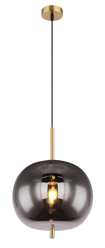 Fuggesztekek › FÜGGESZTÉK FÉM MATT SÁRGARÉZ, FÜSTS@ ZÍNŰ ÜVEG BÚRÁVAL. O: 300MM, M: 12