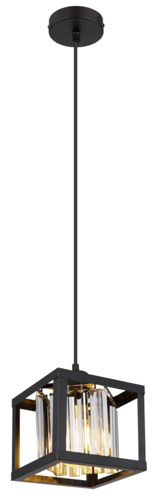FÜGGESZTÉK LÁMPA FÉM MATT FEKETE, FÜST SZÍNŰ METSZETT ÜVEG RUDAKKAL