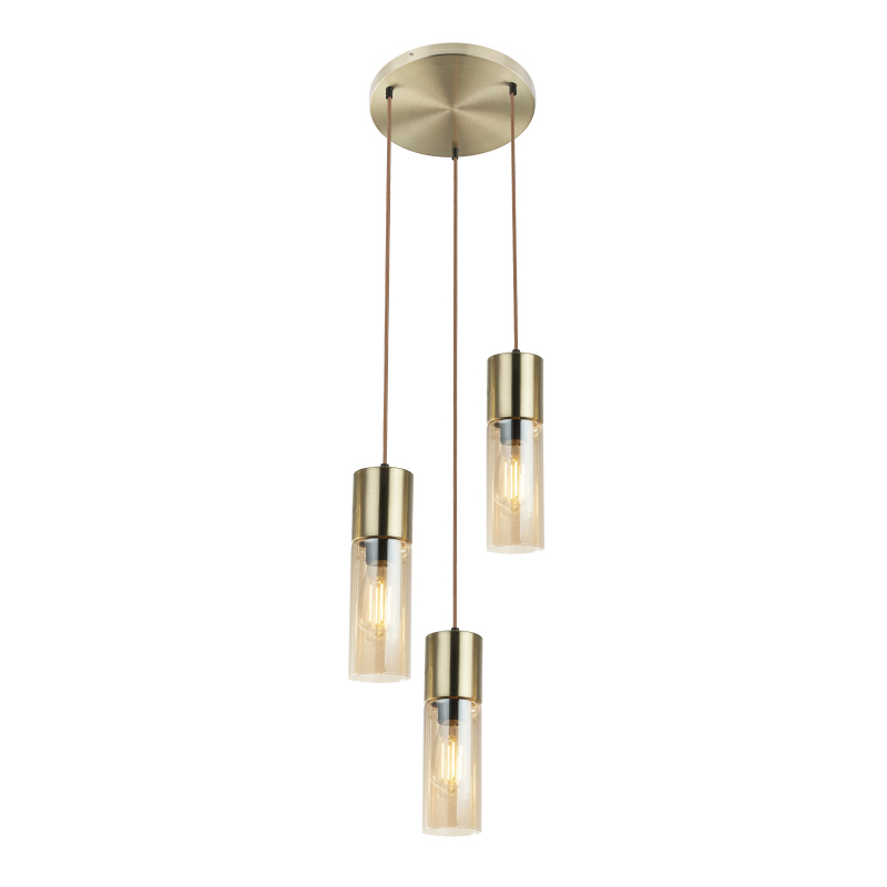 Függeszték matt arany alaplap borostyán színű üveg búrák barna textil