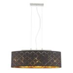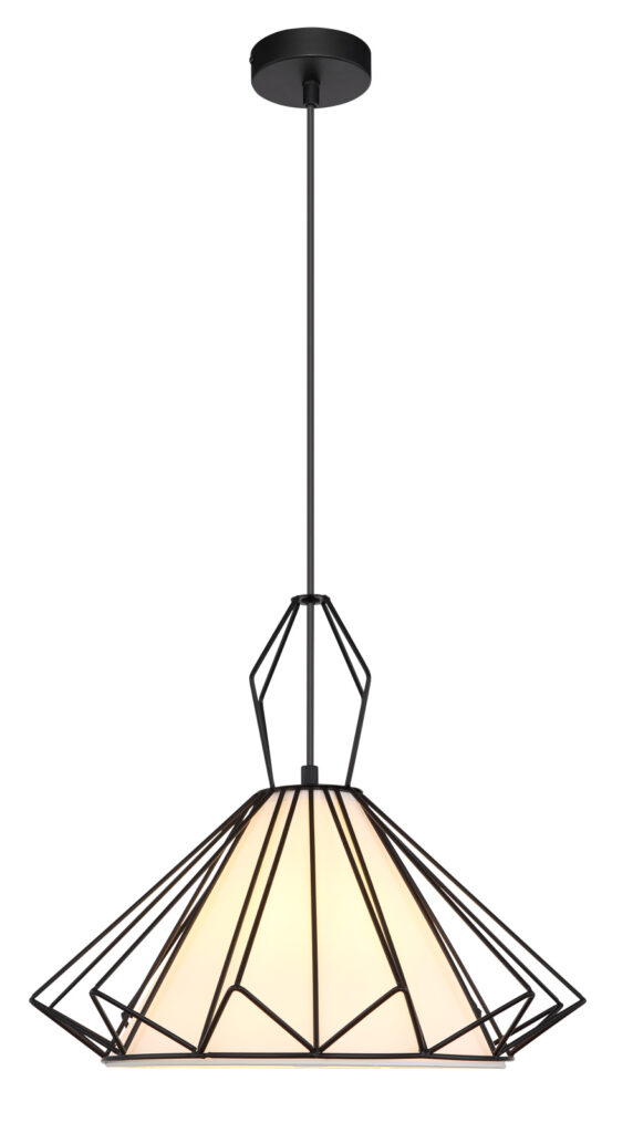 Függeszték matt fekete fém alaplap, fehér textil ernyő, fekete fém drót búra