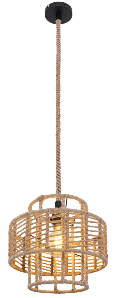 Függeszték matt fekete fém váz, barna kenderkötél dekorral. O:350, m: