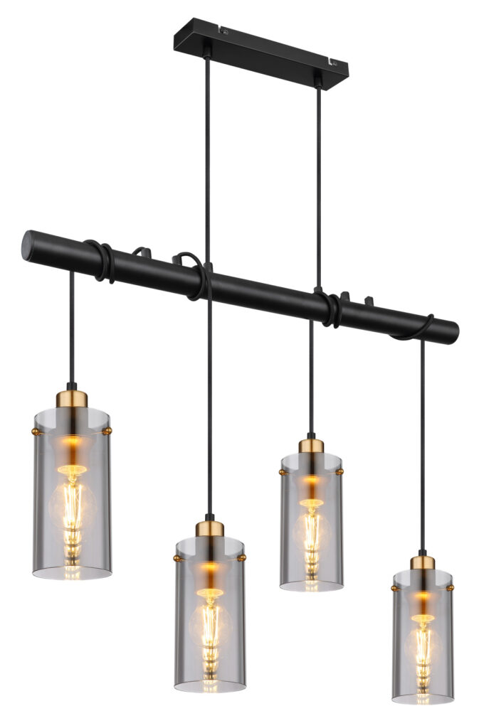Függesztett lámpa fém fekete matt fém sárgaréz matt füstszínű üveg
