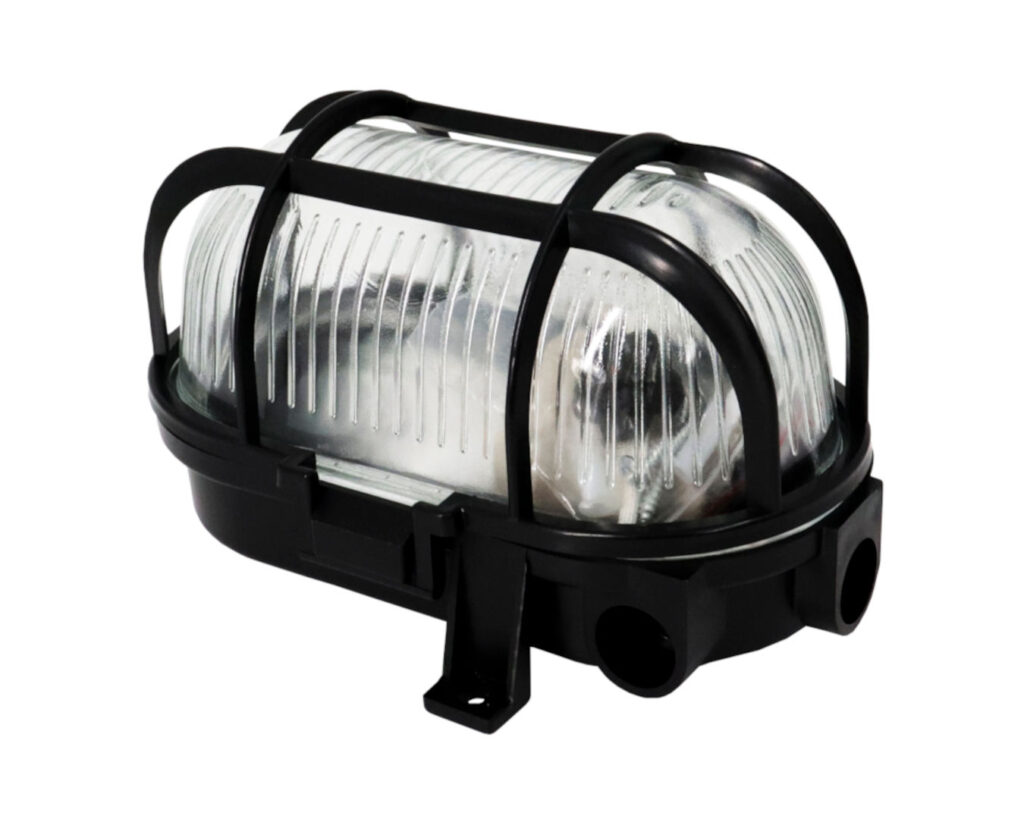 Hajólámpa 60W műanyag rácsos ovális fekete
