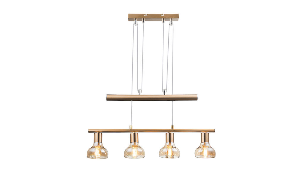 HOLLY függeszték 4×E14 40W borostyán üveg állítható magasságú, antik arany