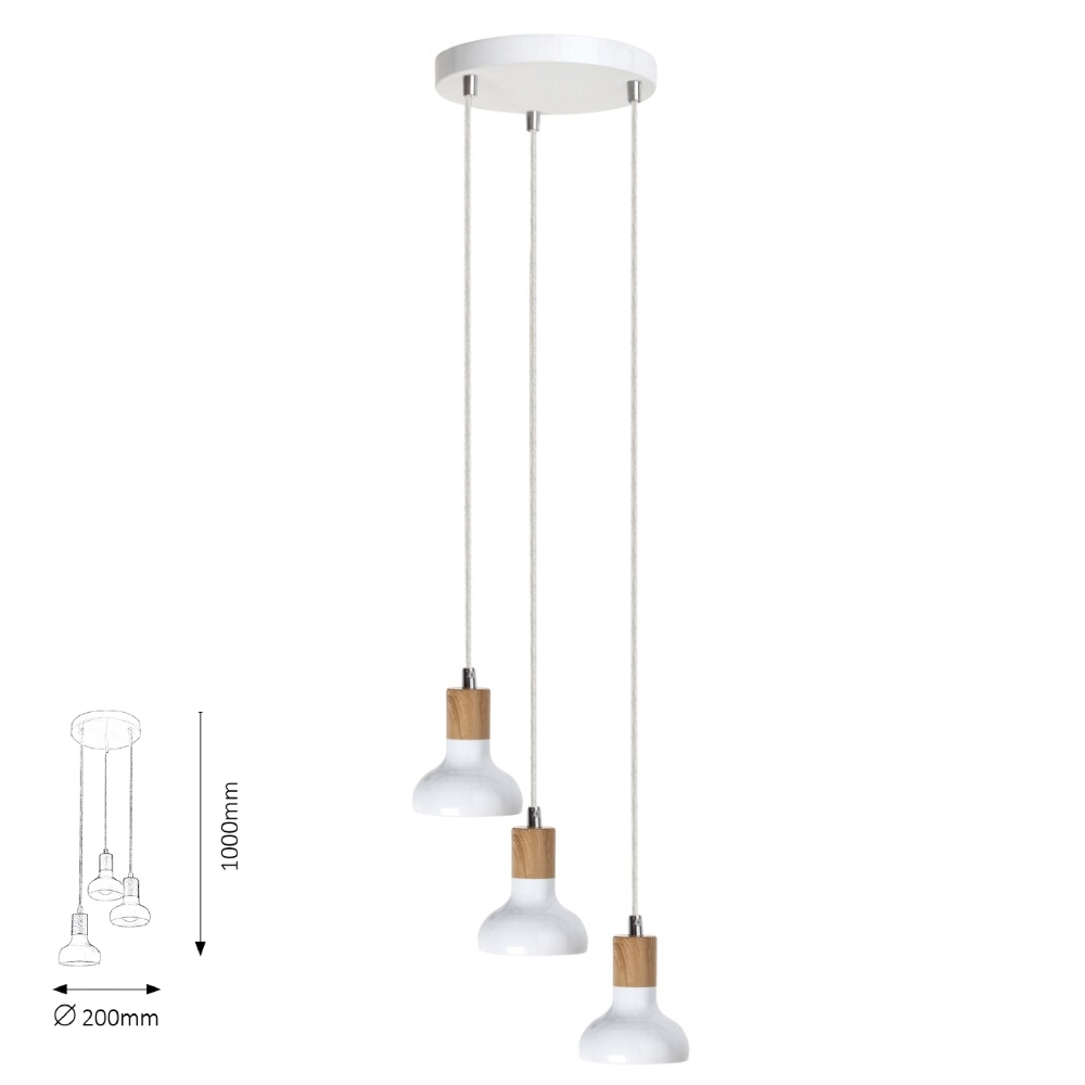 HOLLY függeszték E14 3X 40W fehér/bükk