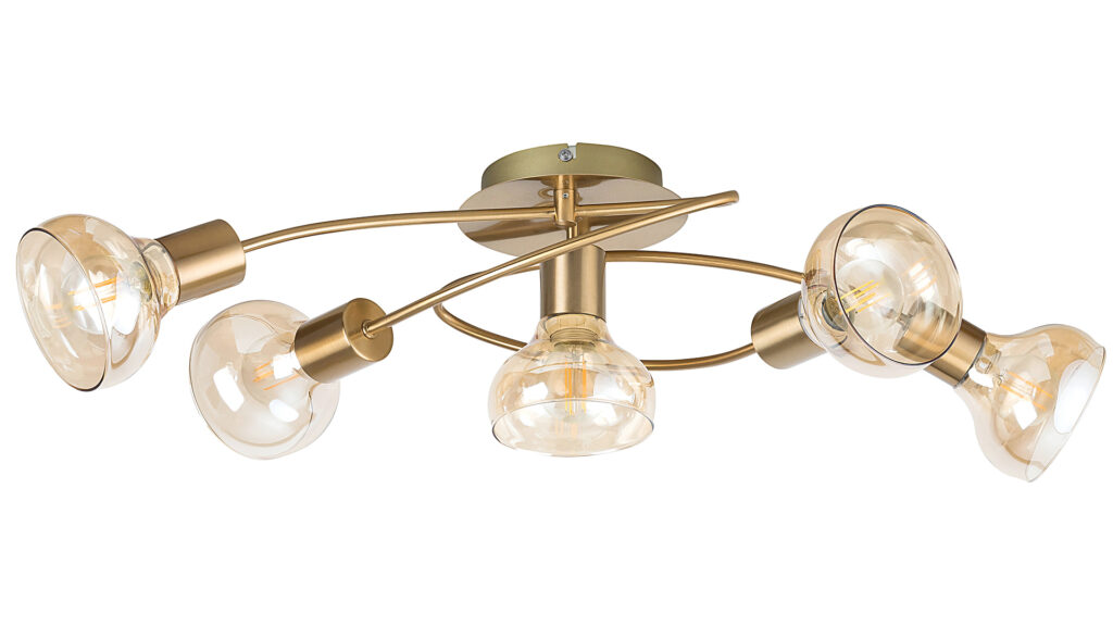 HOLLY mennyezeti 5×E14 40W antik arany/borostyán üveg