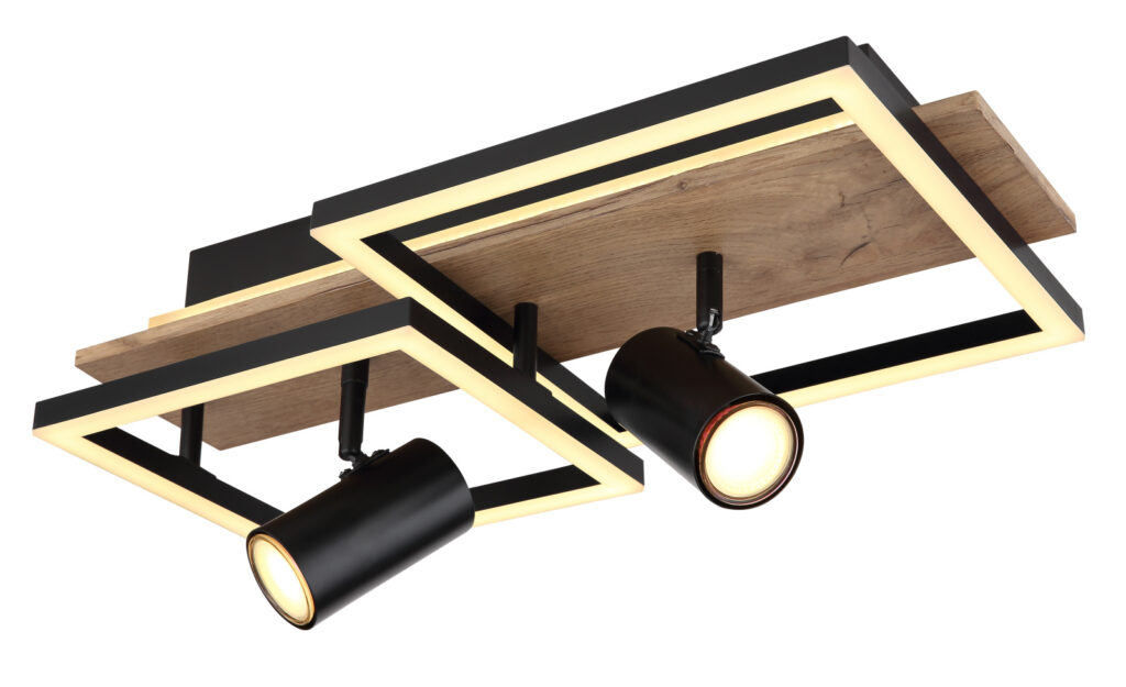 Mennyezeti fém fekete matt MDF fa kinézetű sötét műanyag fehér