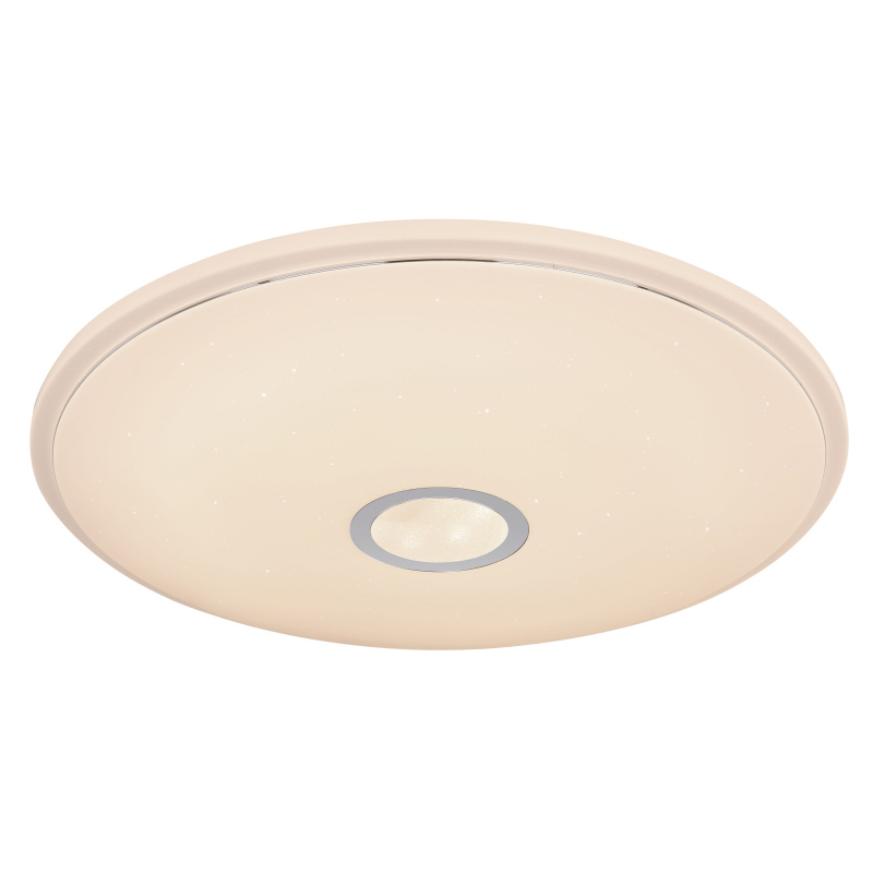 Mennyezeti lámpa fém fehér akril opál búra, króm gyűrű, szikra dekoráció