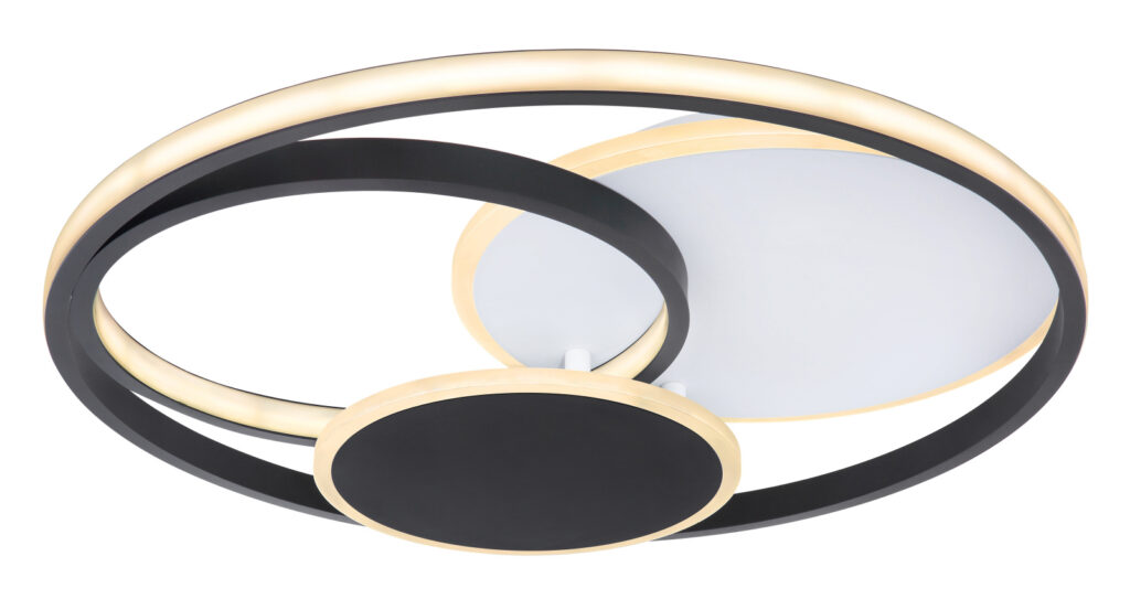 Mennyezeti lámpa fém fehér váz, akril opál búrával, fekete dekorral. f