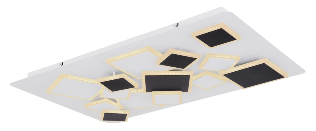 Mennyezeti lámpa fém fehér váz, fém fekete dekorral, akril opál búráva