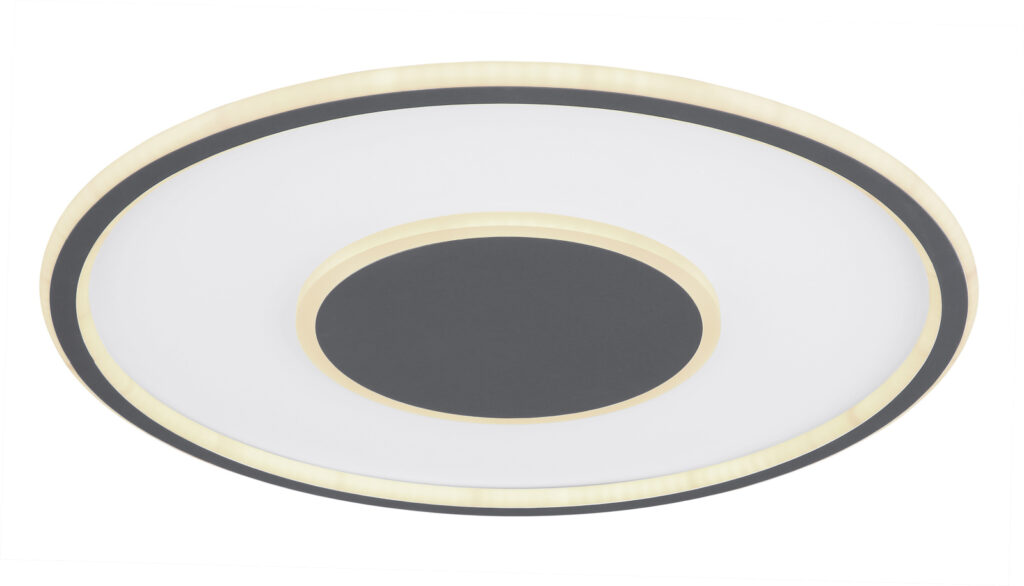 Mennyezeti lámpa fém fehér váz, fém grafit szürke dekor, akril opál búra