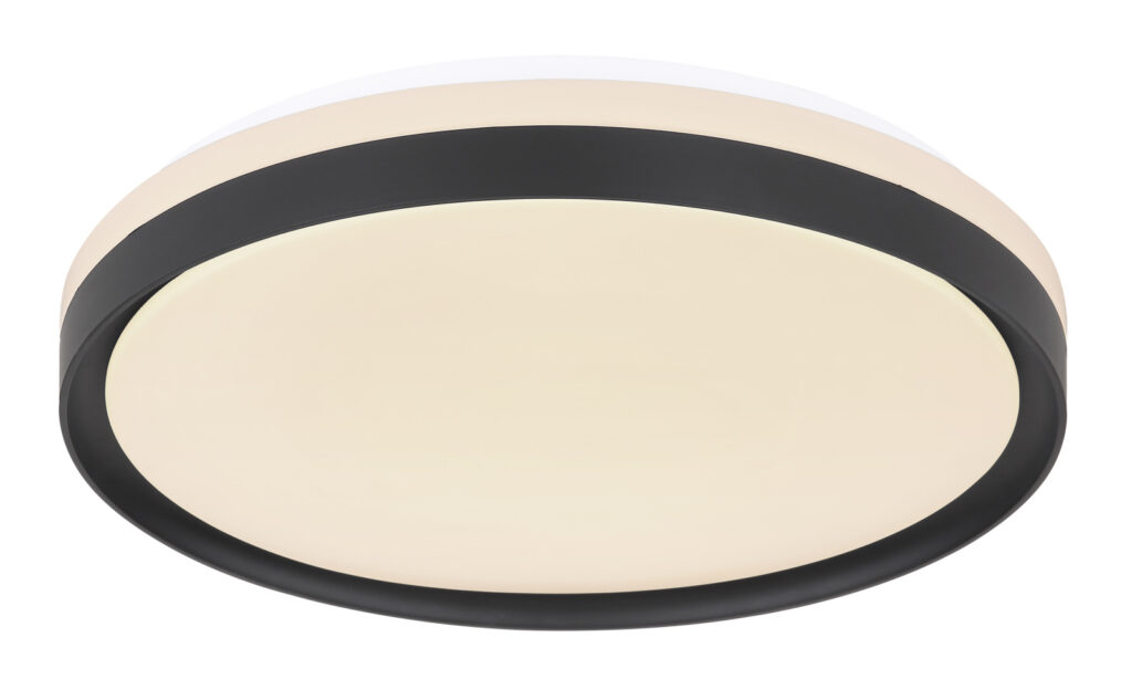 Mennyezeti lámpa fém fehér váz,akril opál búra, műanyag fekete kerettel