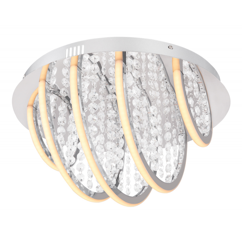 Mennyezeti lámpa króm, akril opál fényforrást elfedő búra, K5 tisztaságú kristály dekorral