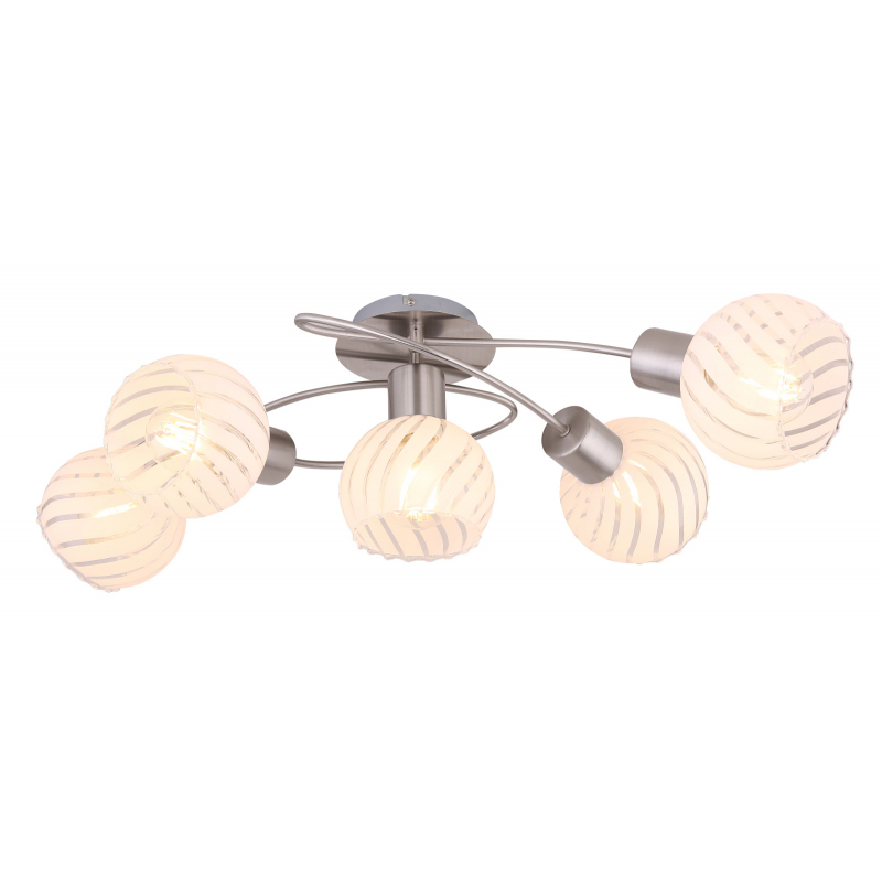 MENNYEZETI LÁMPA, MATT KRÓM FÉM ÉS@ FEHÉR SZATÉN ÜVEG BÚRÁVAL. LXBXH:69