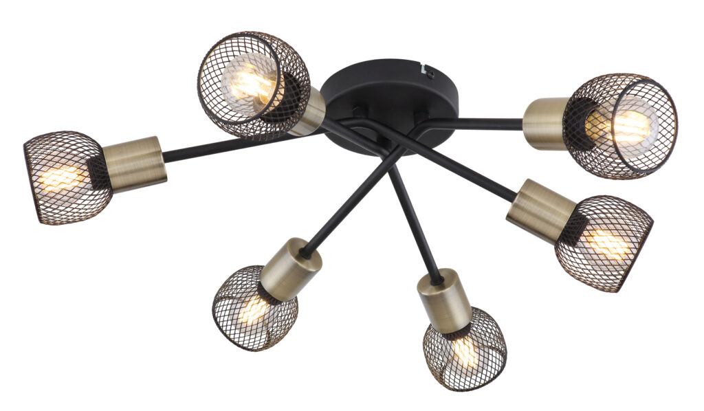 Mennyezetlámpa fekete fém és fém antik réz színű kombinációval. O:6