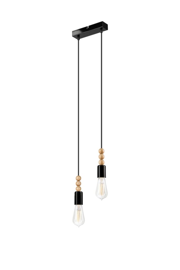 SIMON függeszték 2×60 E27 natúr/fekete gyöngy LM 2.108