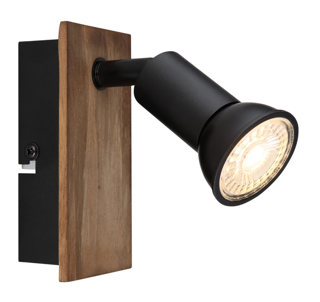 Spotlámpa fa sötétbarna fém fekete matt billenőkapcsoló elem SZXH: