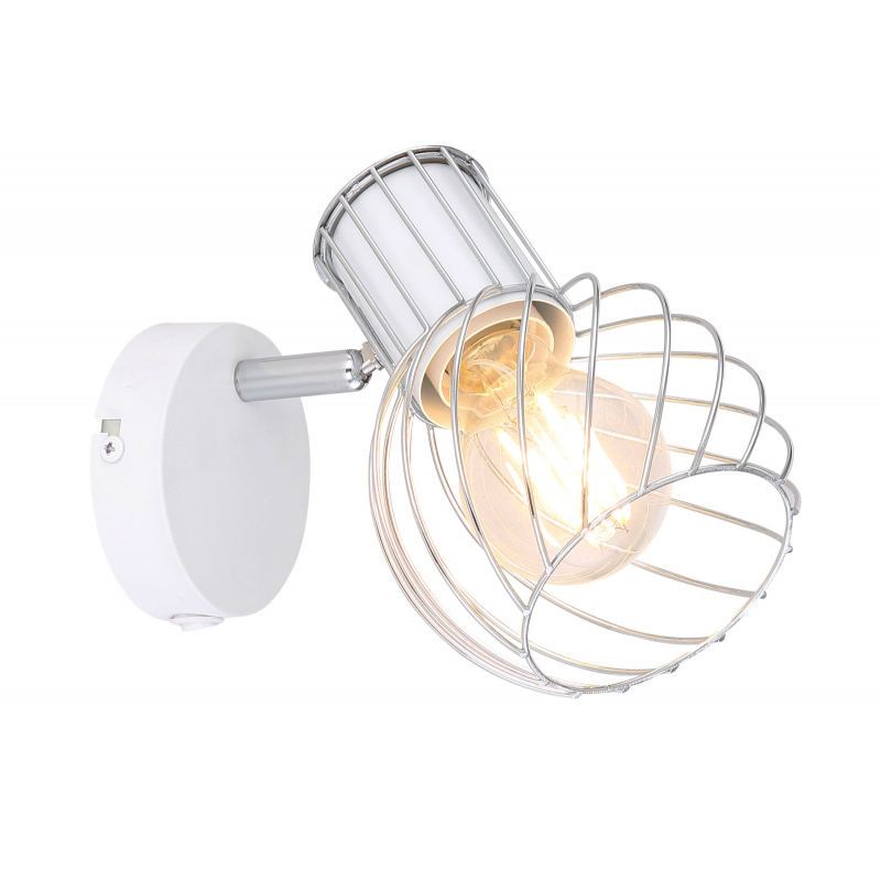 Spotlámpa fehér-króm színben, fém rácsos búrával kapcsolóval szerelve