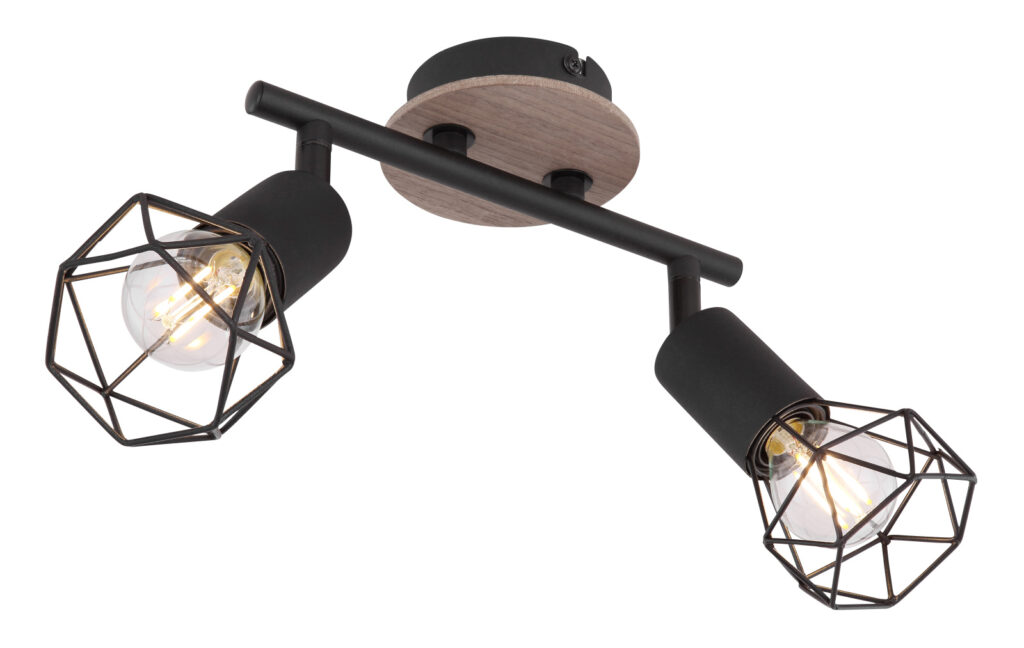 SPOTLÁMPA FEKETE FÉM, BARNA FA BETÉ TTEL. HXSZXM:220X100X180, FÉNYFORRÁ
