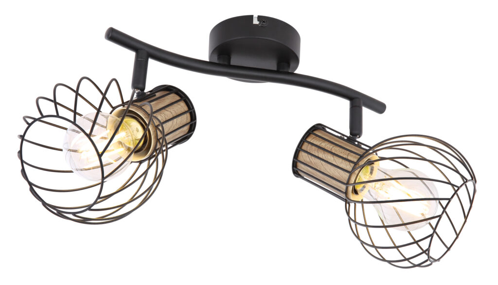 Spotlámpa fém fekete, barna fa mintájú dekorral. HXSZXM:295x230x185, e