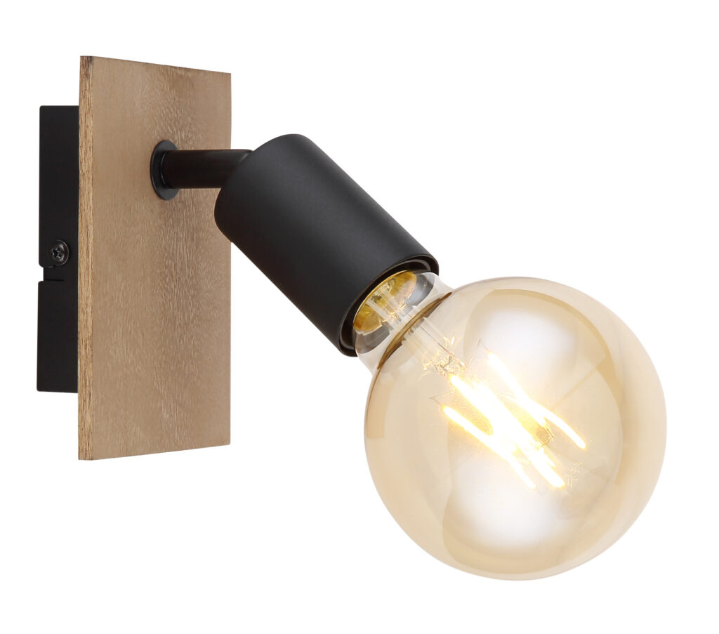 Spotlámpa fém fekete váz, barna fadekorral. SZXM:90X130, AL:110, fény