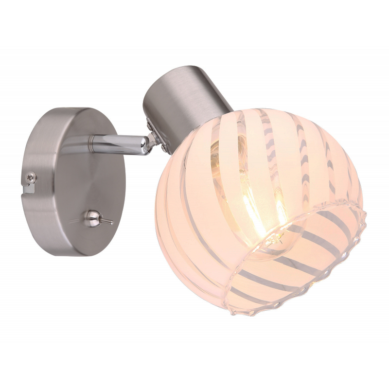 SPOTLÁMPA MATT KRÓM FÉM ÉS FEHÉR SZ ATÉN ÜVEG BÚRÁVAL. BXH:130X150, AL: