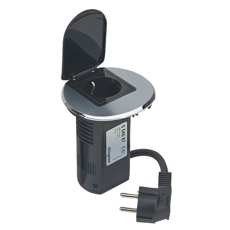 Kabel csatorna › Szerelt asztali kábelrendező rozsdamentes acél,fekete 2P+F aljzat+2m tápkábel,usb telefontöltő