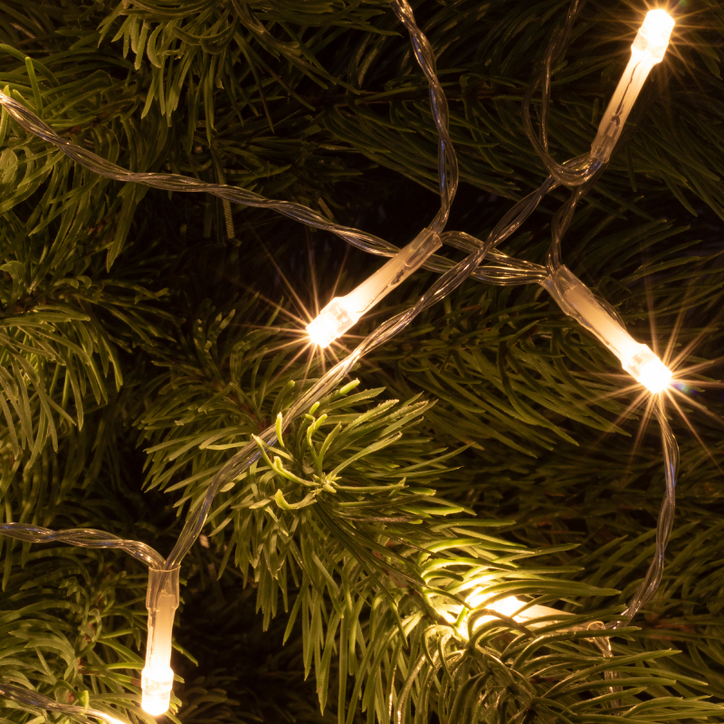 Xmas LED-es fényfüzér melegfehér beltéri, 50db LED, zöld vezeték elemes